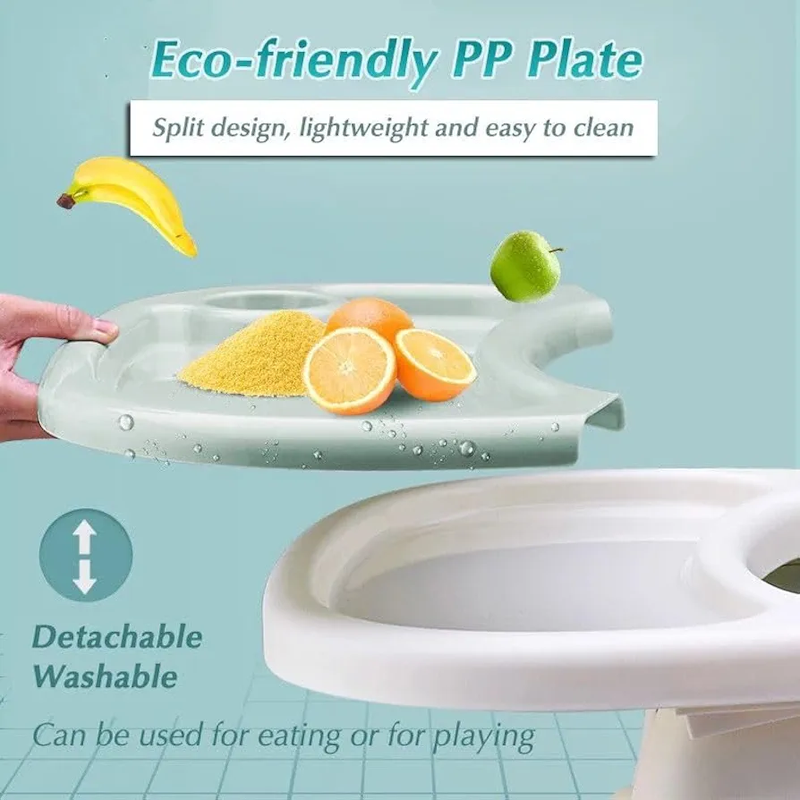 سهل التنظيف والطي: وسادة الكرسي المرتفع مصنوعة من مادة البولي يوريثين، وهي مادة ناعمة وجيدة التهوية وقابلة للإزالة وسهلة التنظيف. يسمح زر الطي بلمسة واحدة بطي الصينية وكرسي الطعام، وهو أمر مريح للغاية لتوفير المساحة في المنزل أو سهولة النقل أثناء التنقل.