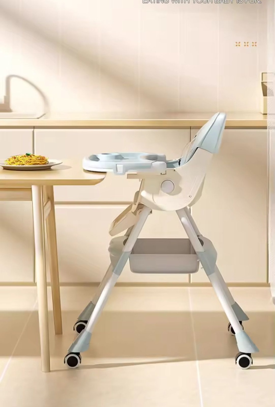 صينية ومسند ظهر قابلان للتعديل: كرسي مرتفع للأطفال الصغار مع صينية قابلة للإزالة بمستويين. الصينية العلوية للوجبات، والصينية السفلية للألعاب. تحتوي صينية التغذية على 4 سرعات قابلة للتعديل للحفاظ على راحة الطفل أكثر. 4 أوضاع استلقاء لمسند الظهر، حتى يتمكن الطفل من الراحة نصف مستلقٍ عندما يشعر بالتعب.